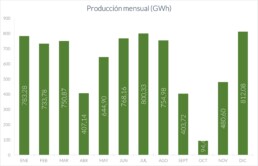 En el siguiente gráfico se muestra la evolución de la producción mensual de la central nuclear de Cofrentes a lo largo del año 2025.